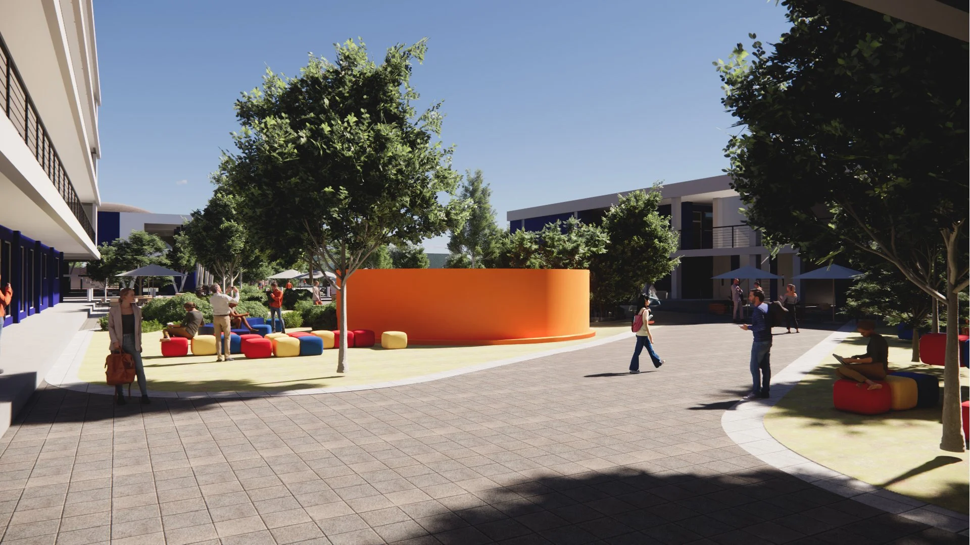 La identidad del ICEST se materializa a través de nuevos Emblemas arquitectónicos, como el Pabellón Arcos y los murales artísticos, que sirven como hitos de referencia visual y cultural. concebido como un Hub Colaborativo, rompe la rigidez del aula tradicional mediante mobiliario urbano flexible y diseño de paisaje. emblemas